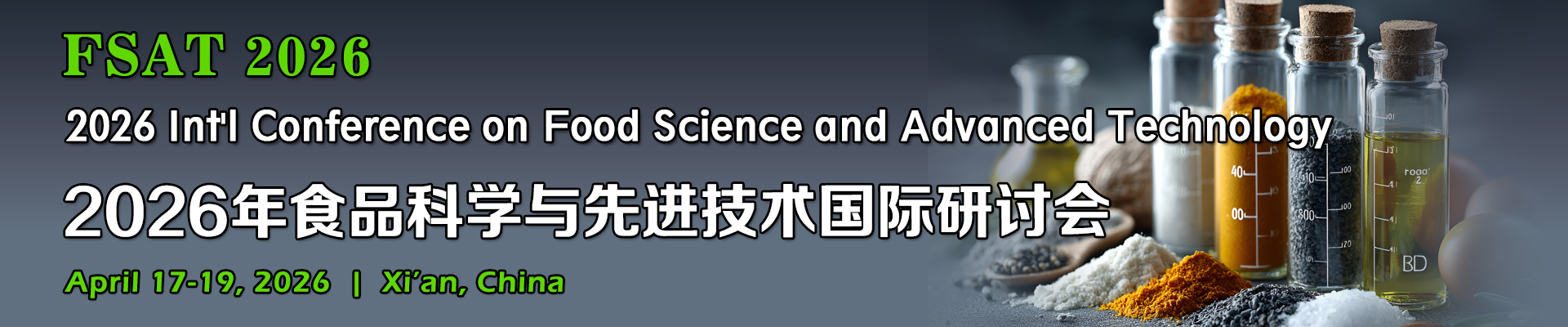 2026年食品科学与先进技术国际研讨会(FSAT 2026)将于2026年4月17-19日在中国西安举行。 本次国际会议聚焦食品科学与先进技术研究相关领域的前沿研究,旨在为行业内专家和学者分享技术进步和业务经验提供一个交流的平台。