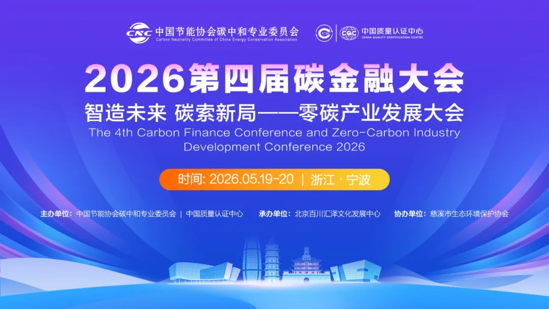 2026年5月19-20日,由中国节能协会碳中和专业委员会与中国质量认证中心有限公司联合主办,慈溪市生态环境保护协会协办,北京百川汇泽文化发展中心承办的 “第四届碳金融大会暨零碳产业发展大会” 将隆重举行。大会以 “智造未来·碳索新局” 为主题,旨在为绿色低碳转型注入金融活水,为零碳产业升级搭建协同创新平台。